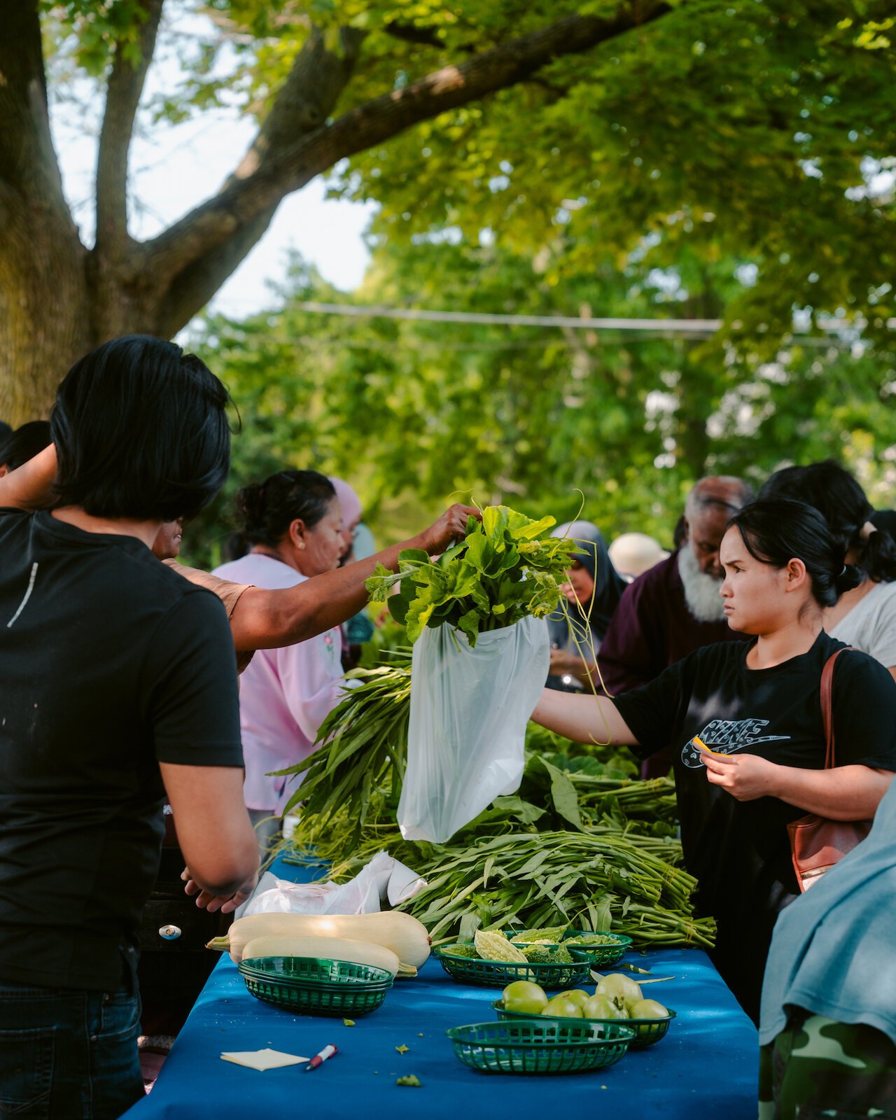 Beyond the practical and health elements, Distler says these markets can be venues for dialogue, cultural exchange, and education. Farm-fresh produce like sour leaf and other unique varieties brought by the Burmese farmers group, for example, cater directly to both local and culturally specific tastes. This also benefits regional agriculture, creating demand for an array of distinctive crops.