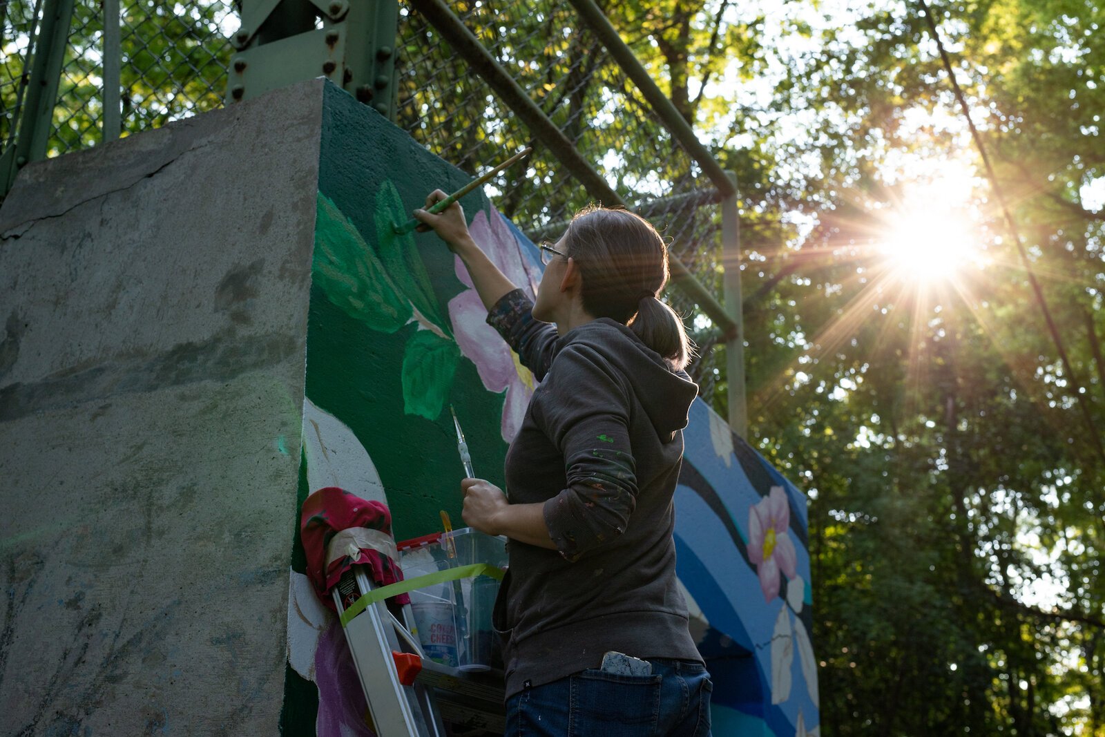 After I graduated with an MFA in creative writing in August 2020, I applied on a whim to assist with a mural project in Columbia City through Make It Your Own Mural Fest. Being able to pick up a brush and help a professional artist make something—and have him believe in me through that process—was life-changing.