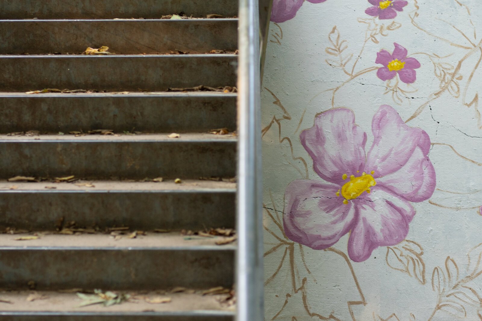 SR: I initially submitted this design for the Jefferson Pointe mural contest, but I think it belongs better here. I love nature: The innumerable leaves and petals and branches. Especially during the pandemic, nature has been an escape for me as well as a source of peace. I wanted to capture that life-giving feeling with this piece. There is so much joy and abundance in small things if we take the time.