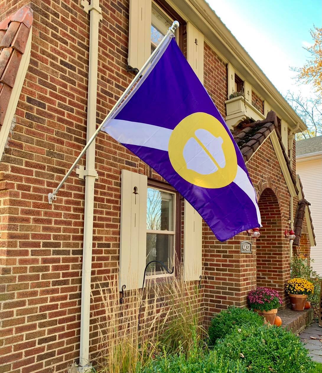 SB: The blue background pays homage to the Fort Wayne flag and the Indiana State flag. In the center of the flag, you’ll see an acorn, which represents the sheltering white oaks under which our neighborhood was built and our commitment to keeping our tree canopy alive and well. The acorn is enveloped in a yellow circle to represent our community and the friendliness of our neighbors and friends who reside here.