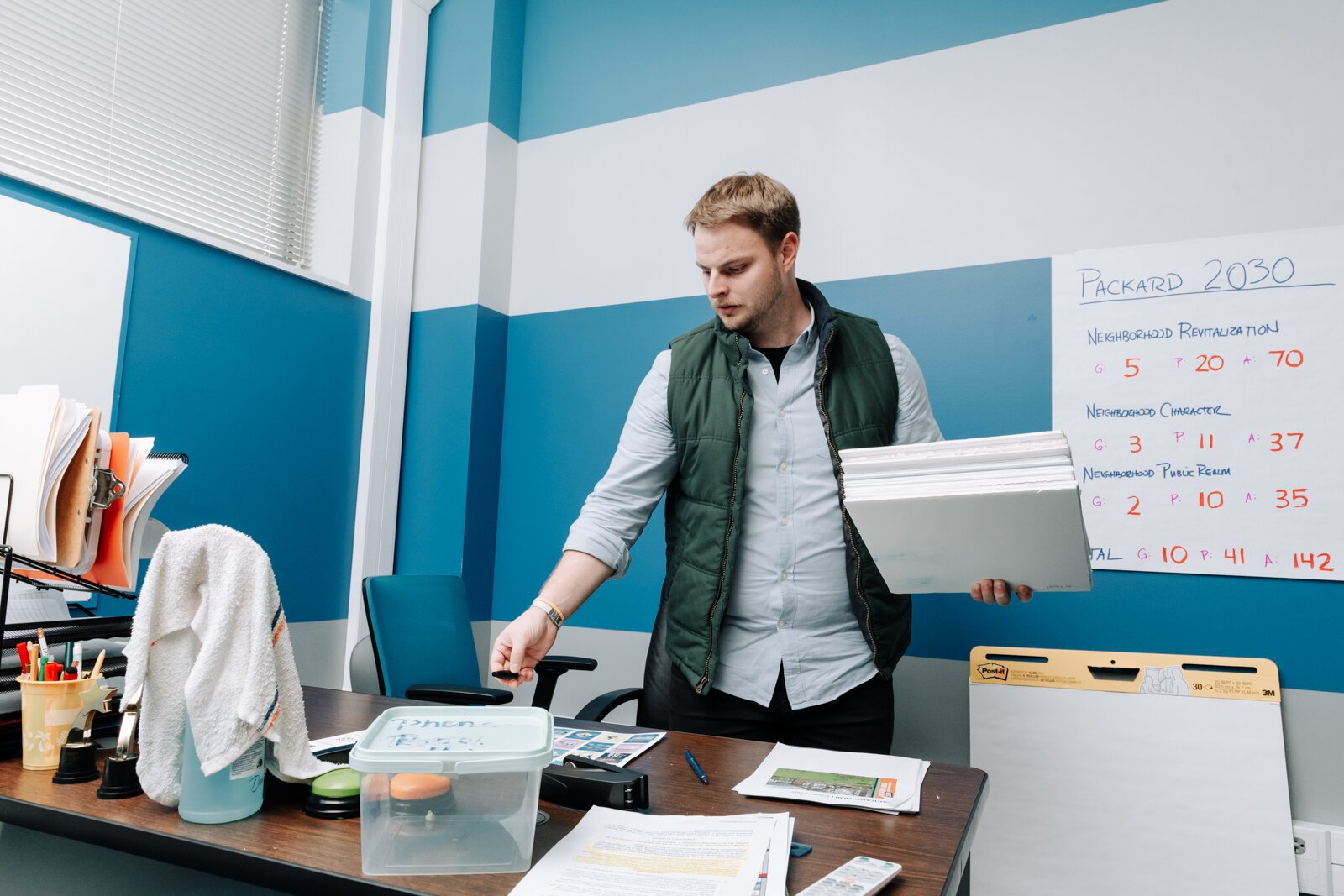 I work with these neighborhood associations to create seven- to 10-year planning documents. It’s about an 18-month process from start to finish—conception to adoption. I also assist with community engagement projects related to planning and working alongside the other three team members to do fill-in projects with neighborhoods. I oversee federal grant funding for neighborhoods, too.