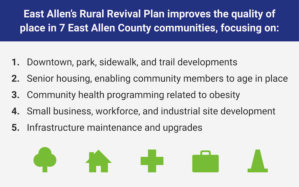 NewAllen Rural Liaison, Kristi Sturtz, notes that East Allen County’s smaller communities often feel as if they are in the shadow of nearby Fort Wayne.