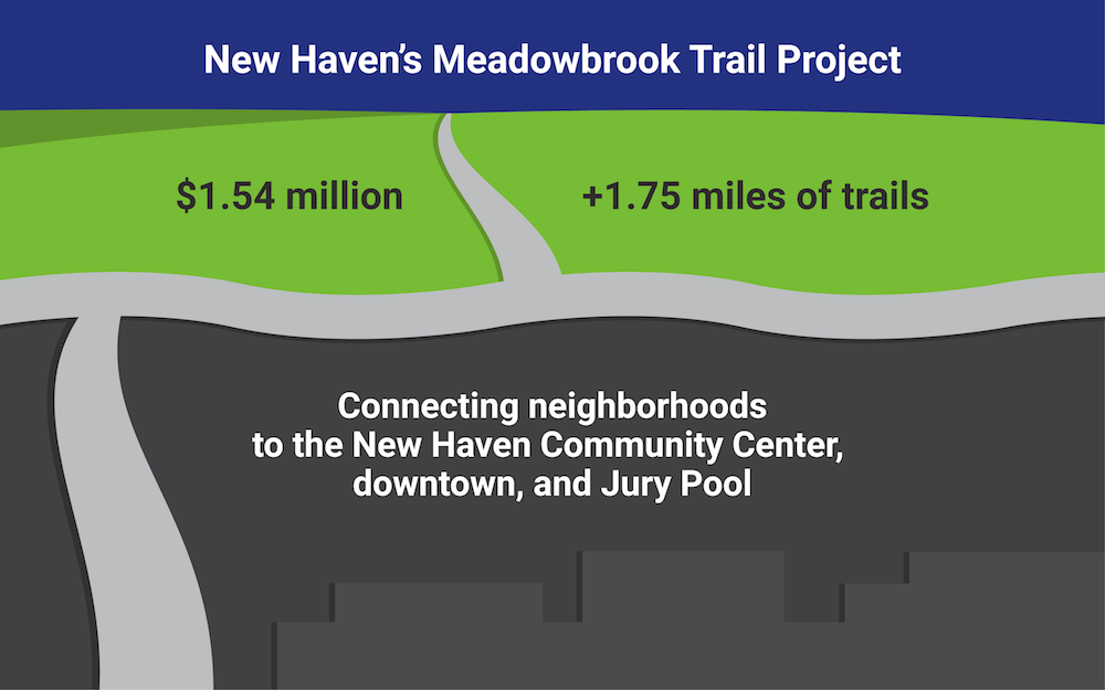 • The Meadowbrook Trail project, Community Center Park project, and Kady Gene Cove senior housing project in New Haven