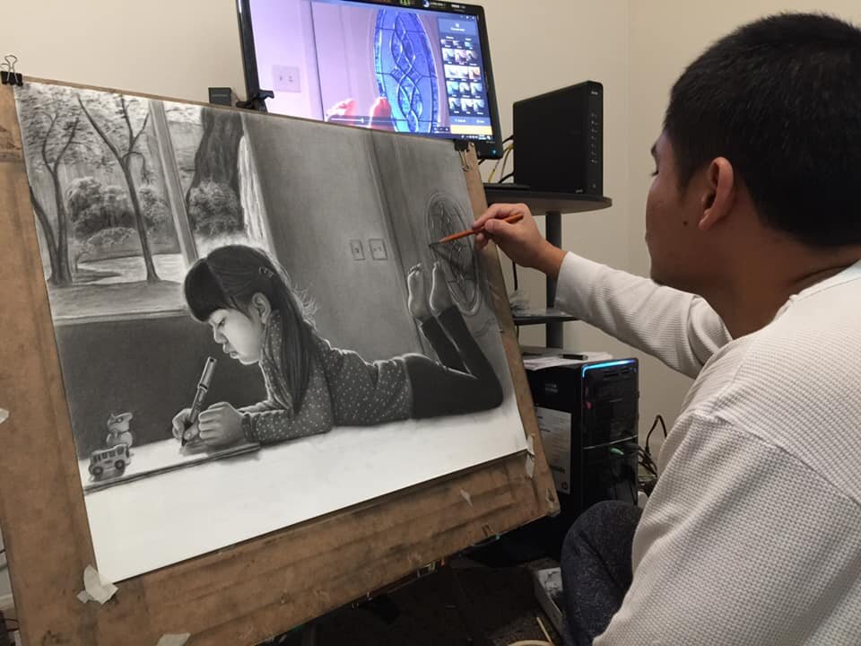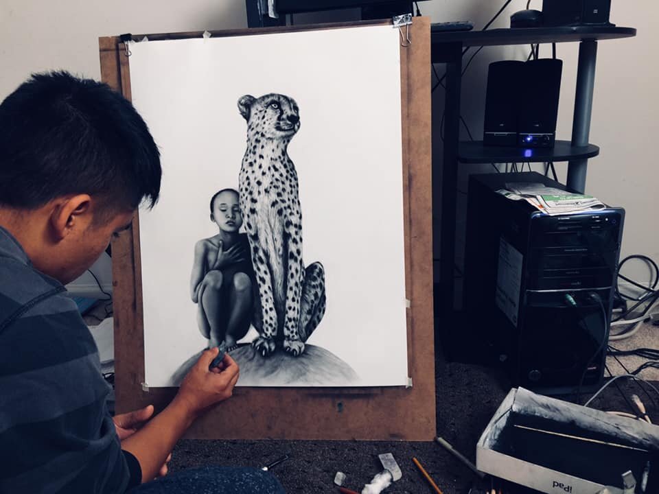 “I was growing up away from my family, and I did not have many friends,” he says. “I would draw pictures of my family from my memories and the places I missed the most as a kid. Art was my only way to express my feelings.”