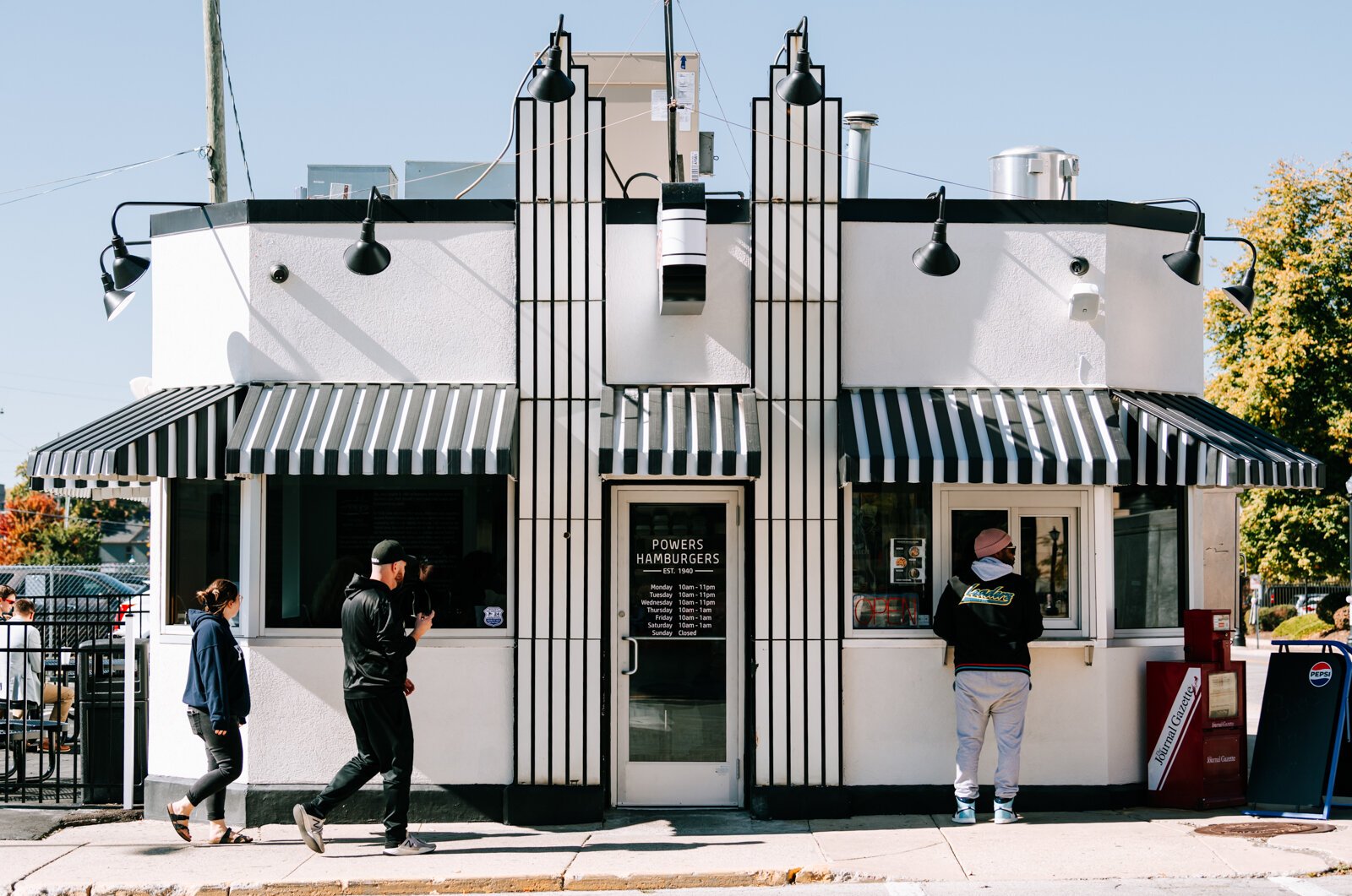 “Sometimes if you’ve eaten at Powers, you’re sitting there eating and you’ve got six people waiting over your shoulder, watching you eat, salivating because they’re waiting on their sack of burgers to go,” he explains. “Being able to take that crowd outside to the walkup window– it’s less crowded for our guests that are choosing to dine in with us.”