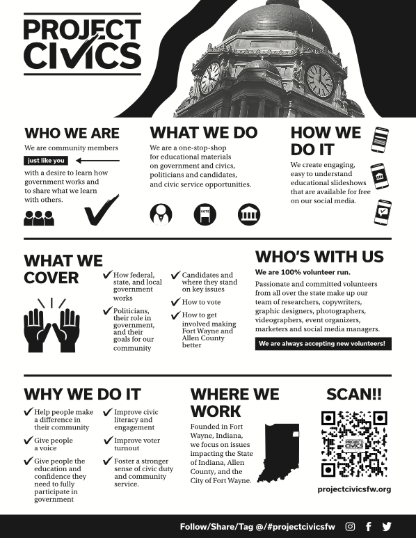 You shouldn’t have to have a degree in political science to effectively participate in government. So our goal for Project Civics following the election is to keep chipping away at the barriers keeping people from being active in local government. We want to keep providing easy to read, easy to understand, easy to find, free civics education to the people of Fort Wayne and Allen County.