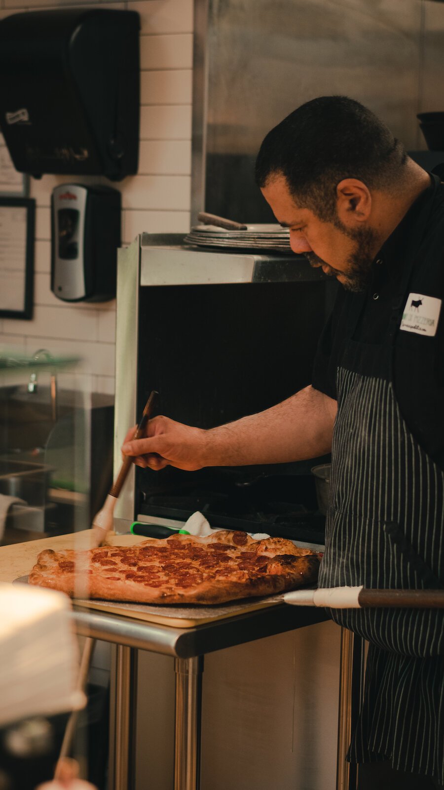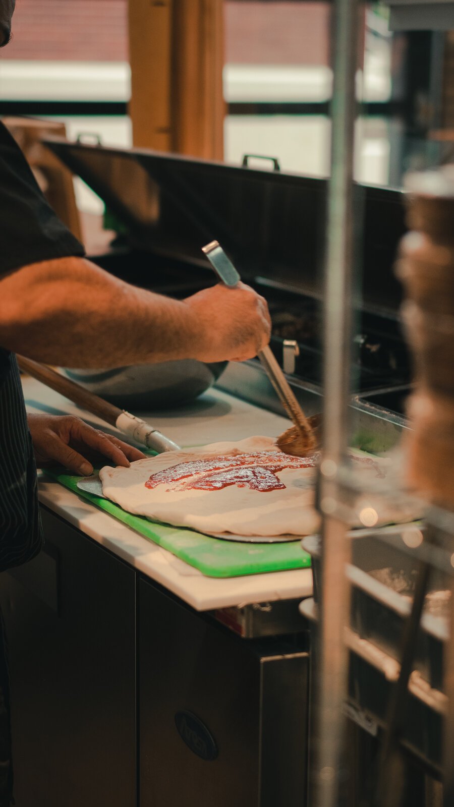 JB: A pizzaiolo is someone who masters pizza, or a pizza chef. I was trained by La Prima Trattoria Pizzaiolo, Jeff Kennedy.