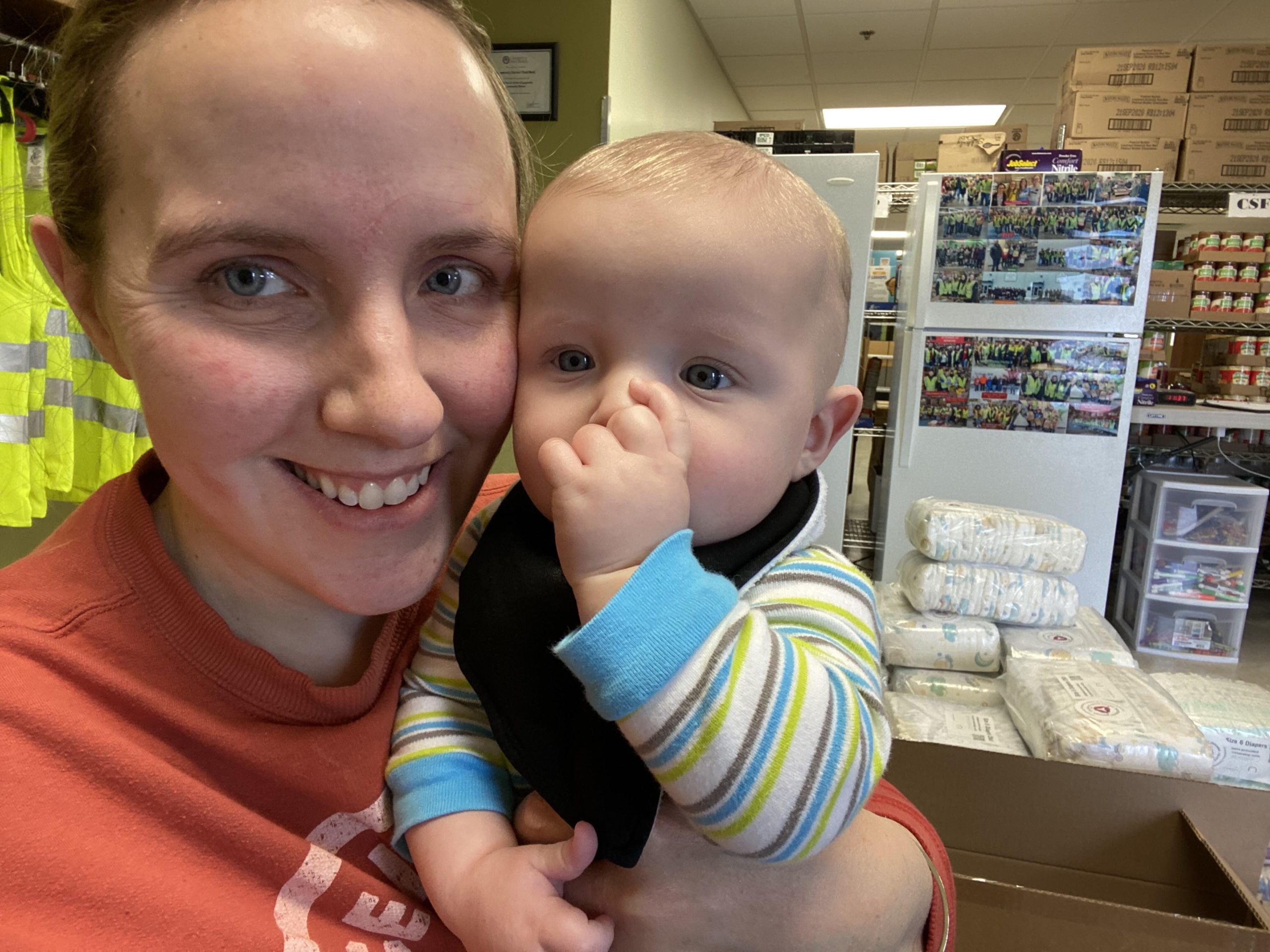 Jennifer Norris-Hale, founder of Mission: Motherhood, works a diaper drive event with her youngest son.
