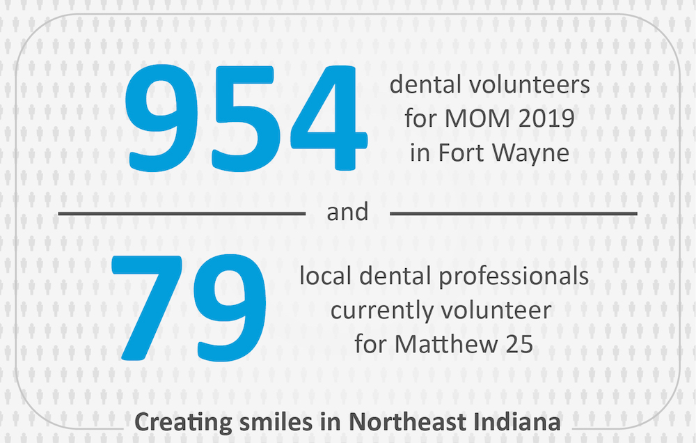 Bland and Gray were among 1,042 people who swarmed the Allen County War Memorial Coliseum in Fort Wayne where the 2019 MOM took place in May. More than 950 volunteers, including local dentists and other professionals, performed services worth $927,000, according to the Indiana Dental Association.