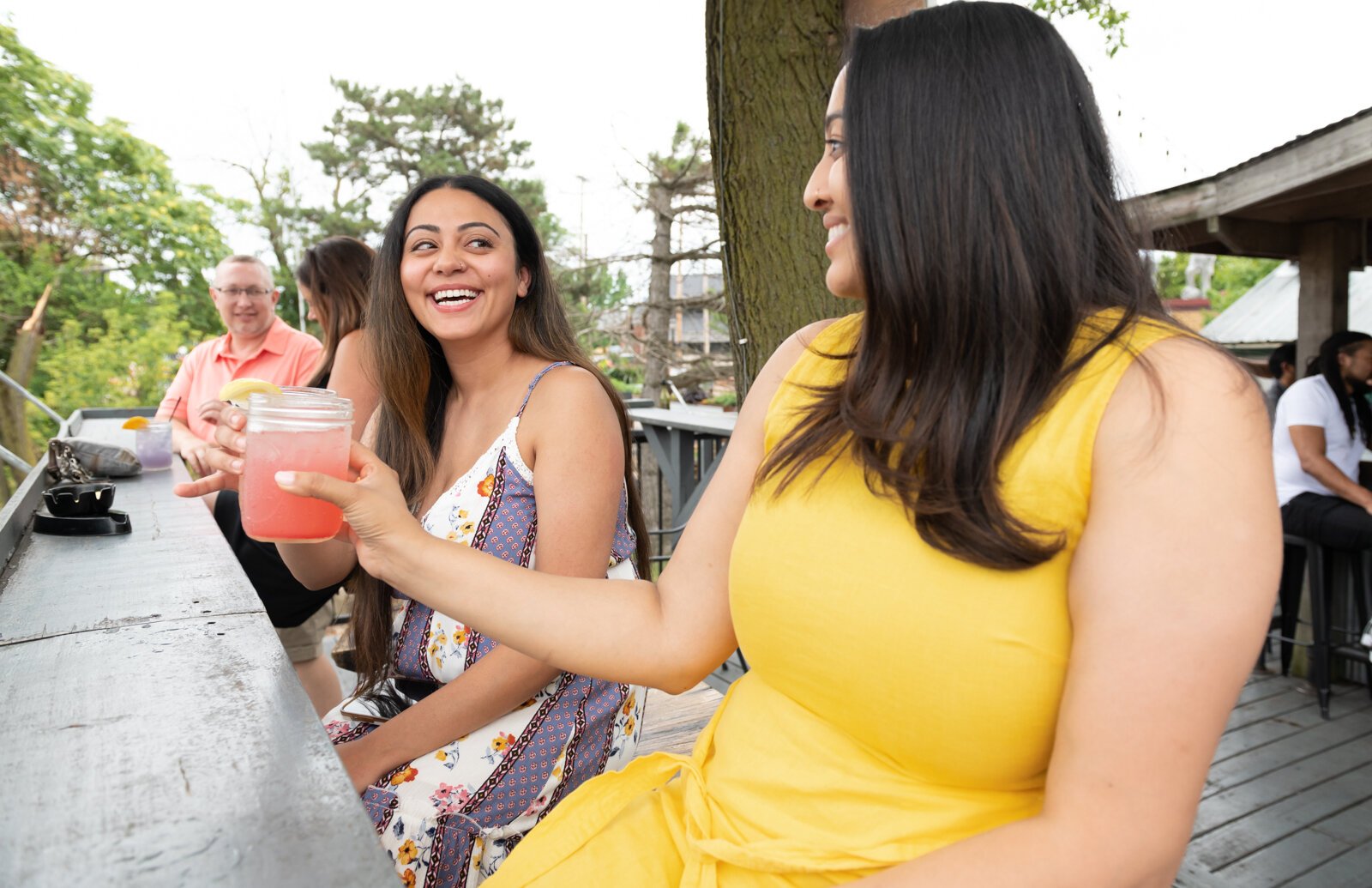 Ashleen Sharma, left, and Riddhi Patel enjoy a drink together at The Deck.