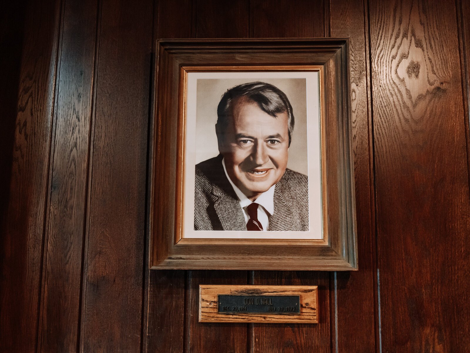 Rachel Von Stroup – A framed picture of Don D. Hall at Don Hall’s Old Gas House, 305 E. Superior.