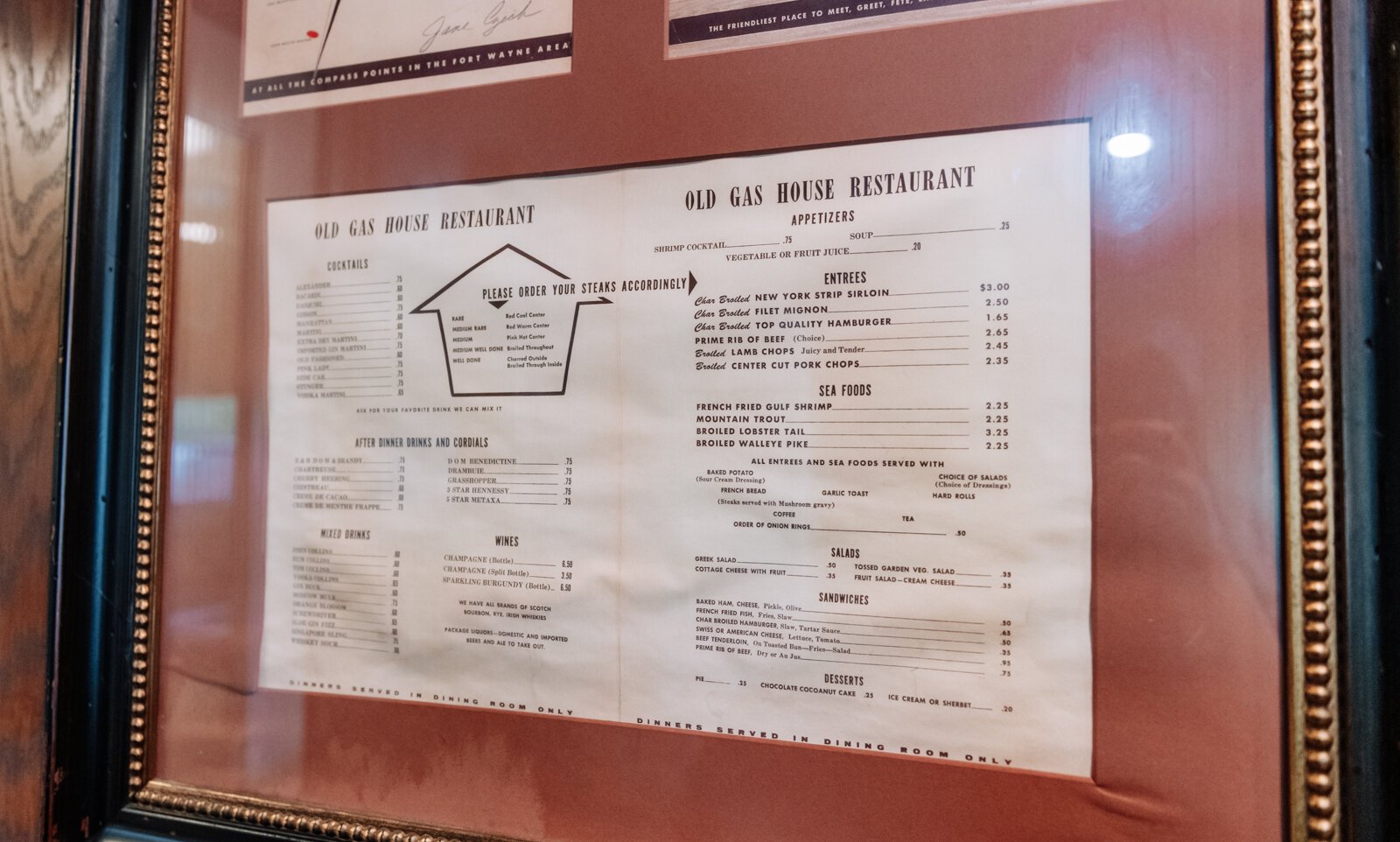 Rachel Von Stroup – An old menu at Don Hall’s Old Gas House, 305 E. Superior.