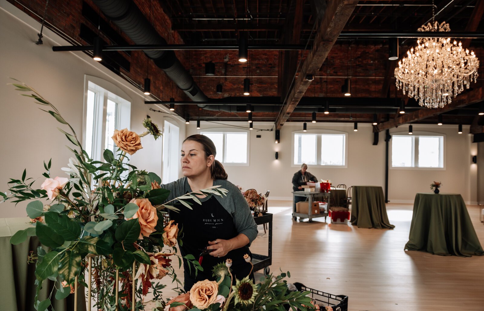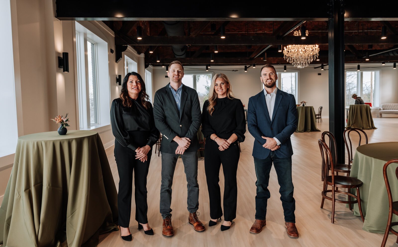 “When we made our way up the stairs and opened the doors to 23-foot ceilings, exposed wood trusses, and red brick we knew that the space would be a beautiful venue."