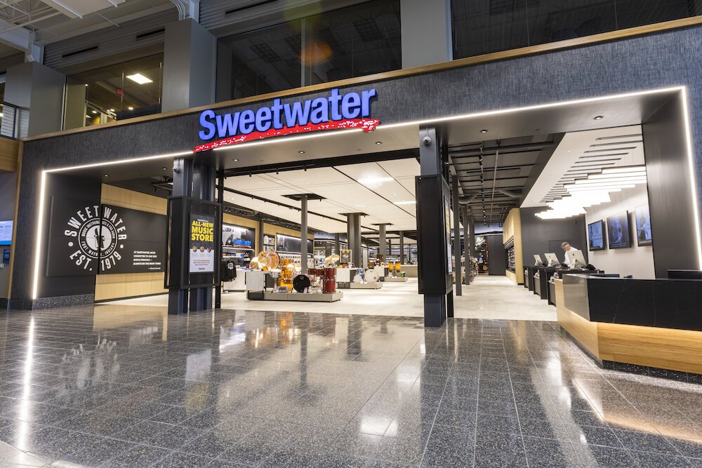 Sweetwaterās new retail store entrance provides a glimpse into what you can expect inside.
