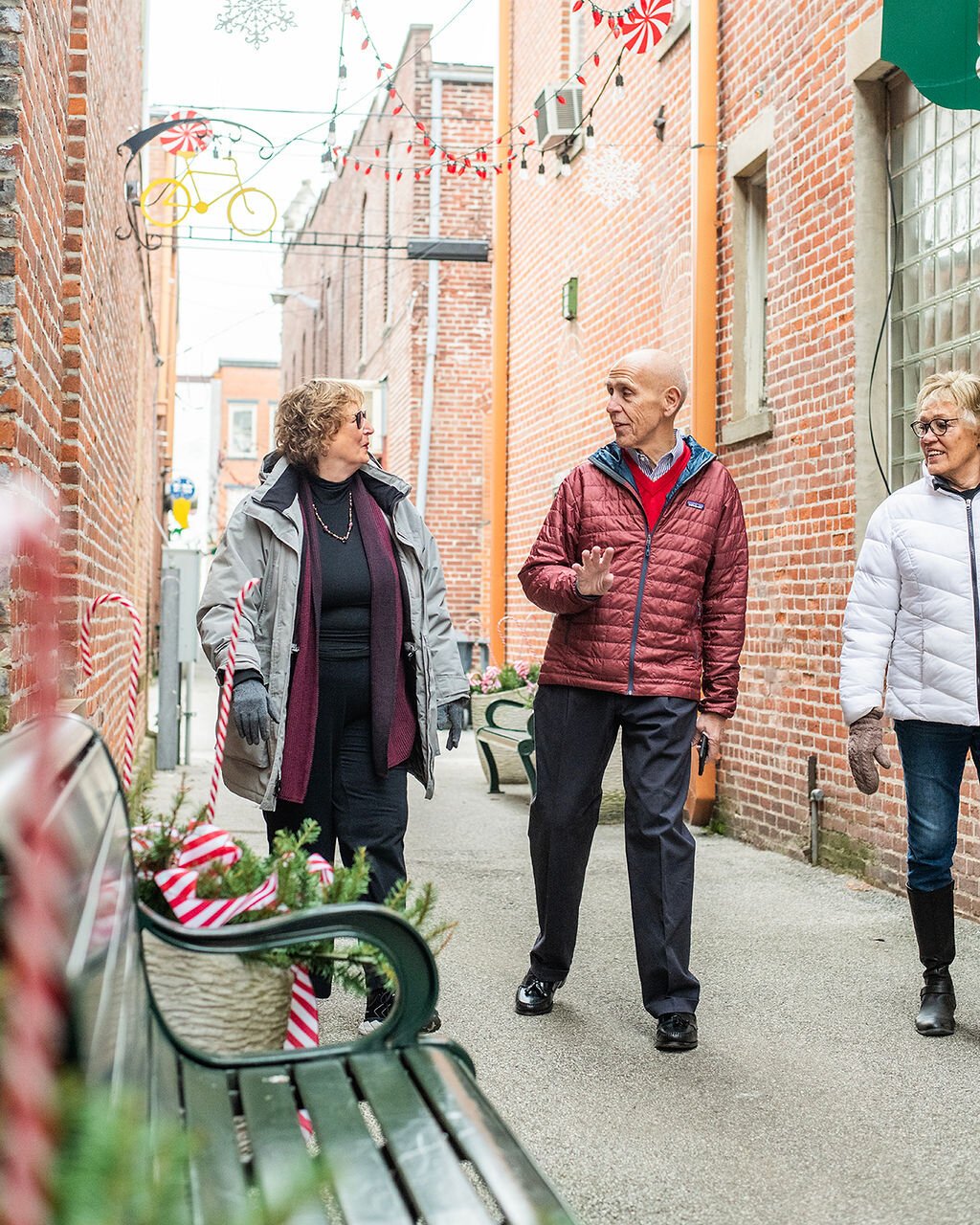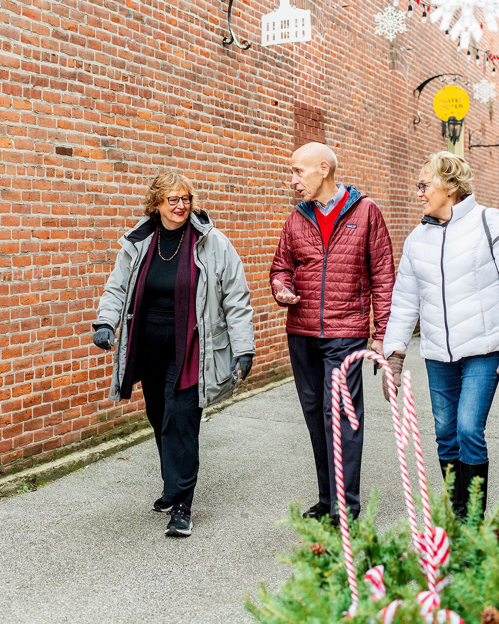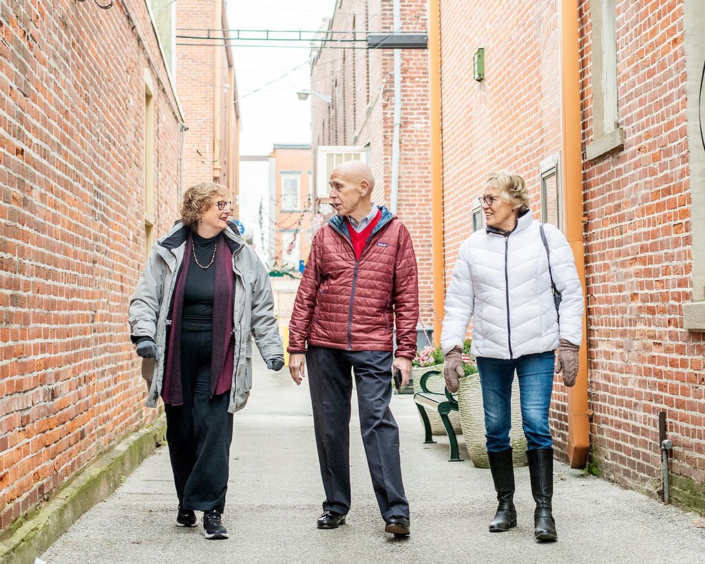 Retirees (left to right) Dave Haist, Jan Roland, and Beverly Vanderpool walk through Downtown Wabash.