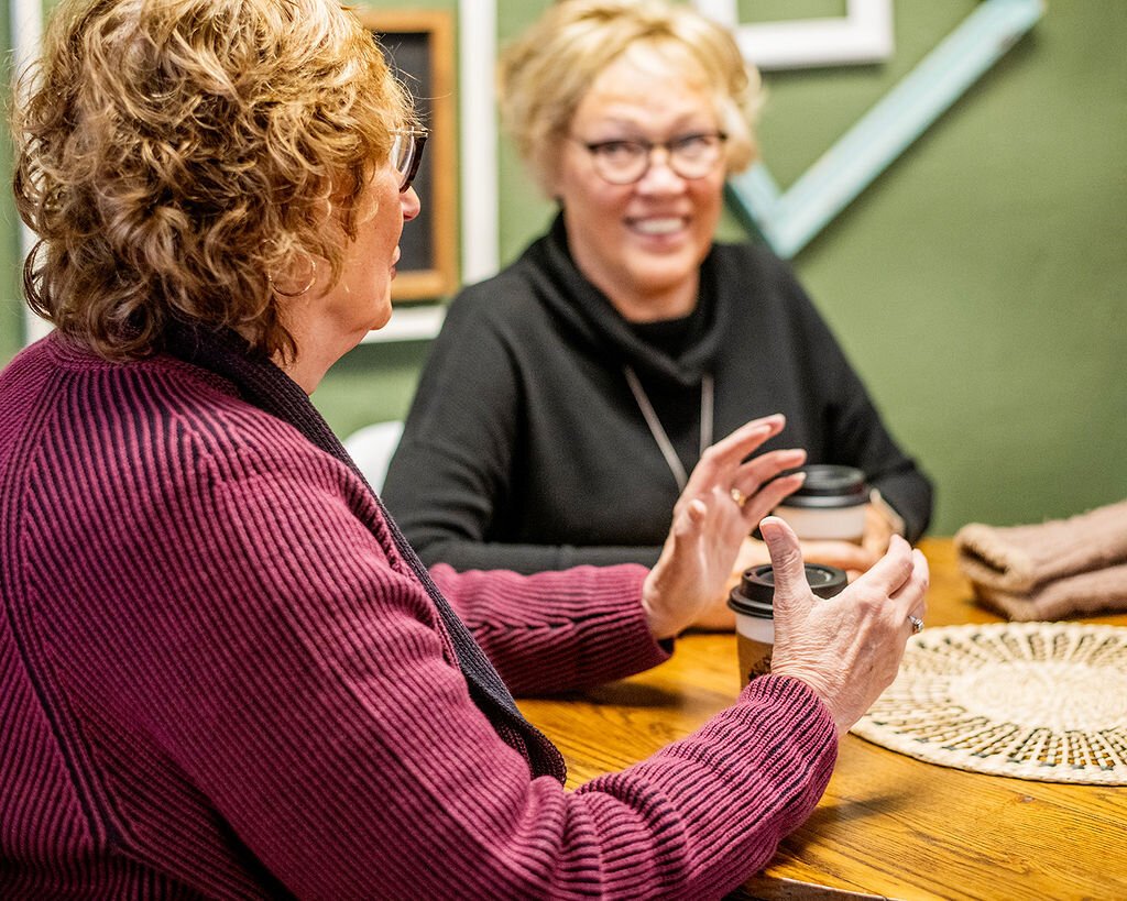 Jan Roland and Beverly Vanderpool at Modoc's Coffee Shop in Wabash.