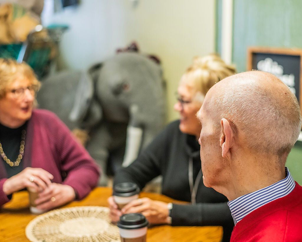 Kaleigh Middelkoop – Jan Roland, Beverly Vanderpool, and Dave Haist at Modoc’s Coffee Shop in Wabash.