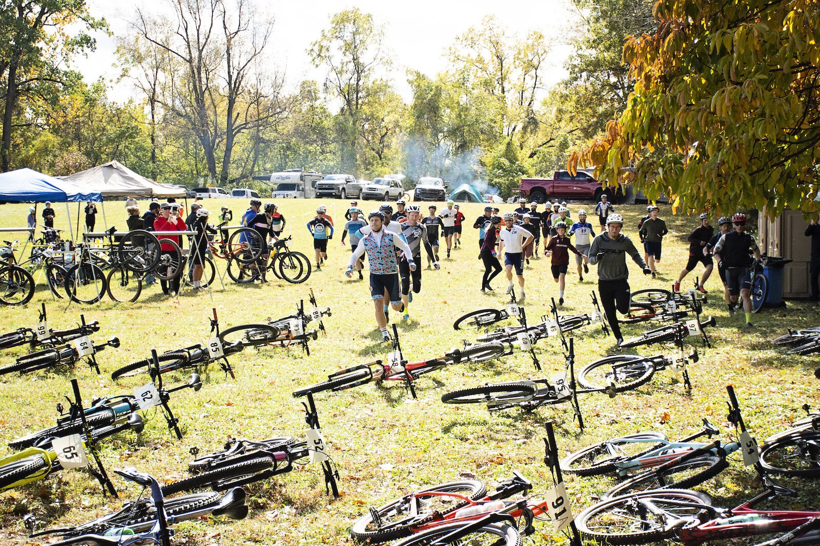 Kosciusko County Velo – Competitors sprint to their bikes to start the 6-hour endurance race.