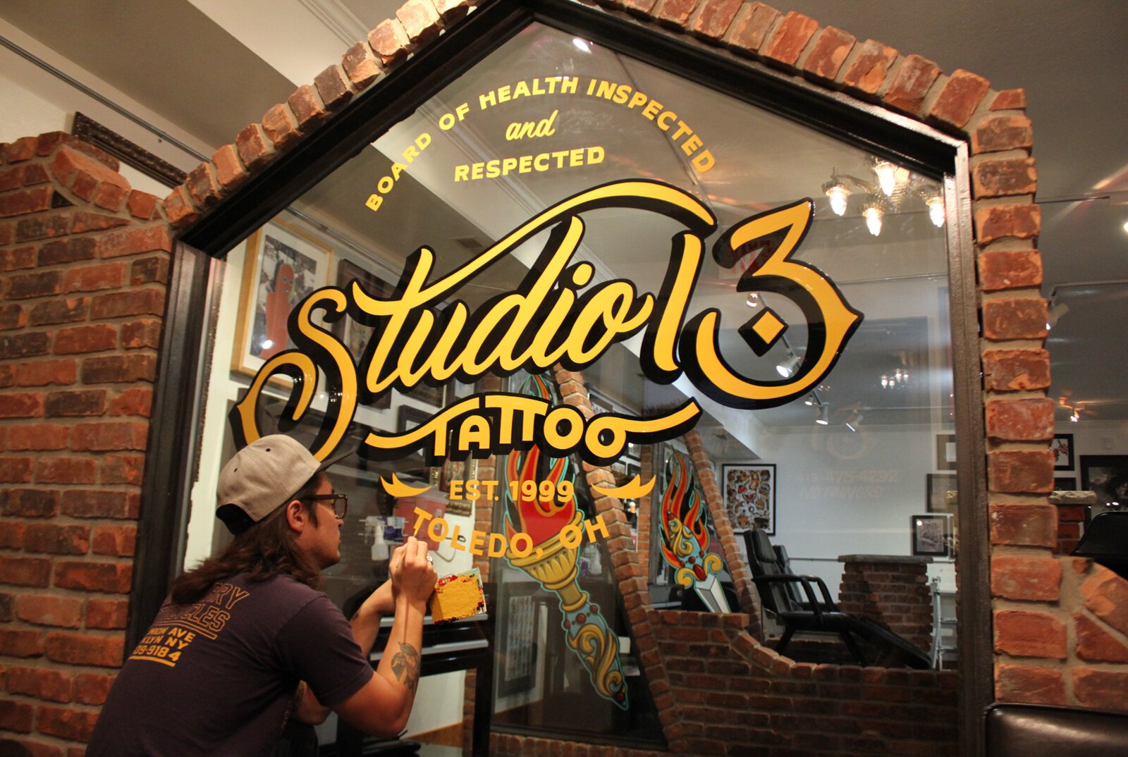 “Justin Lim is a modern-day renaissance man,” says Jake Farris, co-owner of Studio 13 Tattoo Shop. “In the time that I have known him, he has been everything from a tattoo apprentice in Southeast Asia, a barber school student, and a professional sign painter. When it was time to rebrand the front of our business, Justin was the easy choice.”