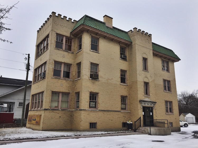 The largeĀ commercial building once housed five businesses on the main floor with apartments upstairs, and the small building was an apartment complexĀ calledĀ the āCastle buildingā for its uniqueĀ architecture.