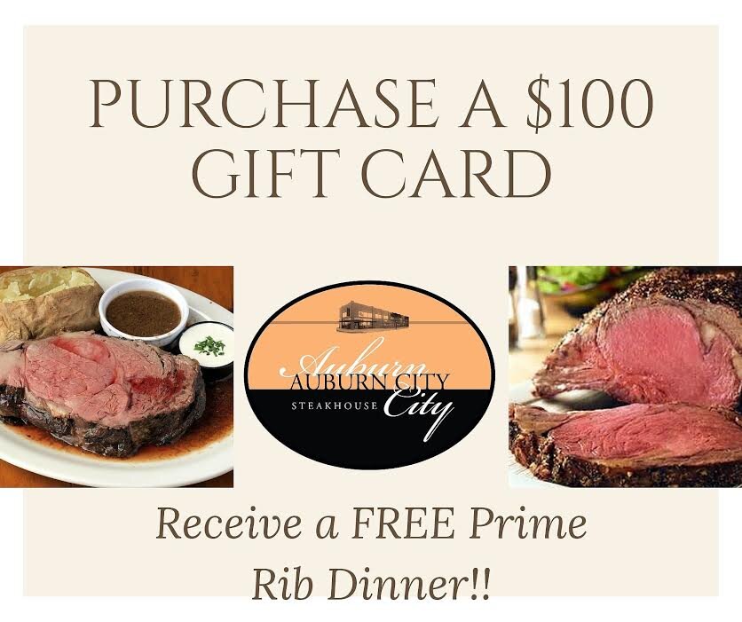 Auburn City Steakhouse is open for takeout or delivery service Tuesday-Saturday during COVID-19, offering lunch from 11 a.m. to 1 p.m. and dinner from 4-8 p.m.Ā